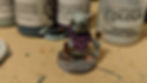 With the main body of the model done it was time to work on the details. Here I've blocked out the colours. I used Magos Purple Contrast for the poncho, Midlund Flesh for the ears and feet and Black Templar Contrast for the goggles.